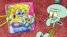 He then calls Mr. Krabs and lies near being sick, but the latter is not fooled. He then goes over to Squidward'south house and has SpongeBob take care of him until he is better, much to Squidward'due south dismay. Squidward tries to relax past finishing his painting, playing his clarinet, and eating his strudel, just SpongeBob constantly annoys him in an attempt to treat his disease.